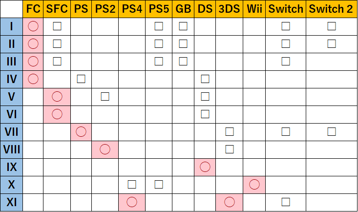 Ⅰ→Ⅵ(FC→SFC)Ⅵ→Ⅺ(SFC→PS4)ですもんね…。
